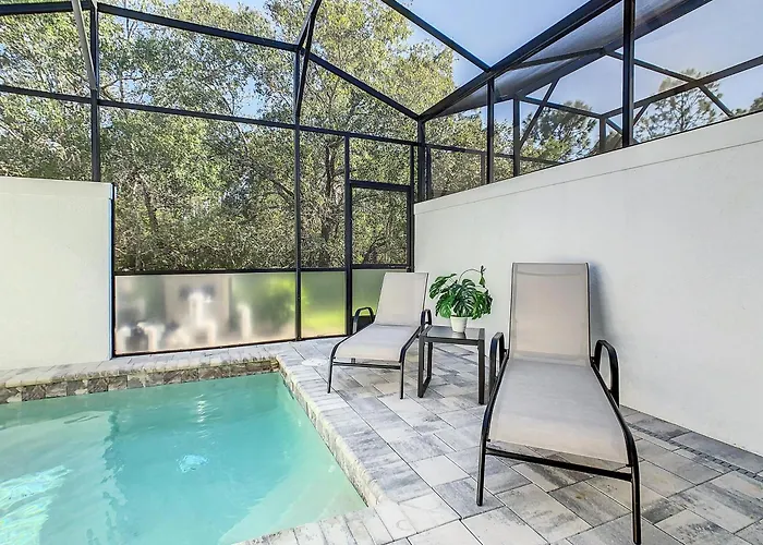 O aeroporto em Orlando Internacional fica a cerca de 55 km da propriedade. Depois de um dia de turismo em Orlando, pode relaxar em piscina privada no local.